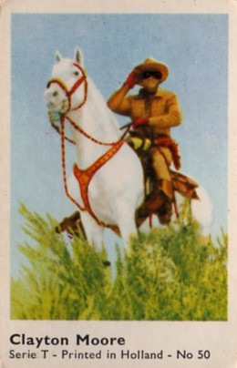 Um dos famosos cartões de cowboys, com o Lone Ranger, interpretado pelo Clayton Moore.